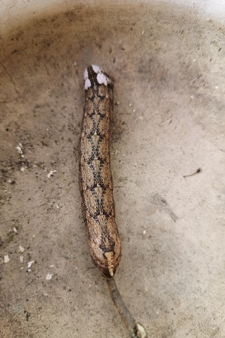 Oliva B. hat geschrieben: Mo 25. Okt 2021, 05:42 Es ist die aune Farbvariante einer Larve des Totenkopfschwärmers :)