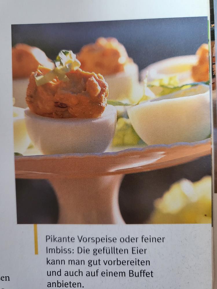 Pfeffer abschmecken. Die Masse in die Eiweißhälften füllen.