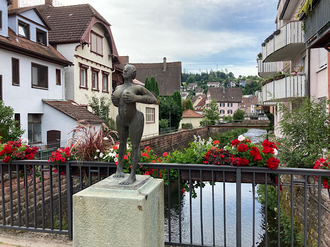 Herrlich war der Anblick der hoch über der Nagold liegenden Altstadt von Altensteig und es wundert uns nicht, dass die unter Denkmalschutz stehende Fachwerk-Gruppe aus dem 15. bis 18. Jh in fast jedem Bildband Baden-Württembergs zu finden ist. Bei der Wahl des Ferienhauses hat Jefe jedoch nicht bedacht, dass eine malerische Altstadt nicht unbedingt auch ein idealer Ausgangspunkt für Unternehmungen sein muss. Das Leben der kleinen blitzsauberen Stadt findet nämlich im Tal zu beiden Seiten der Nagold statt.