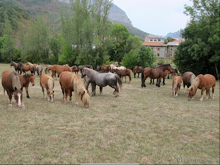 Unterwegs hatten wir nicht nur Rinder an den Straßenrändern sondern auch viele Pferde gesehen. Dass die Picos de Europa auch ein Rückzugsgebiet für Wildpferde und andere bedrohte Tierarten wie z.B. Braunbär und Auerhahn sind, haben wir erst später gelesen.
