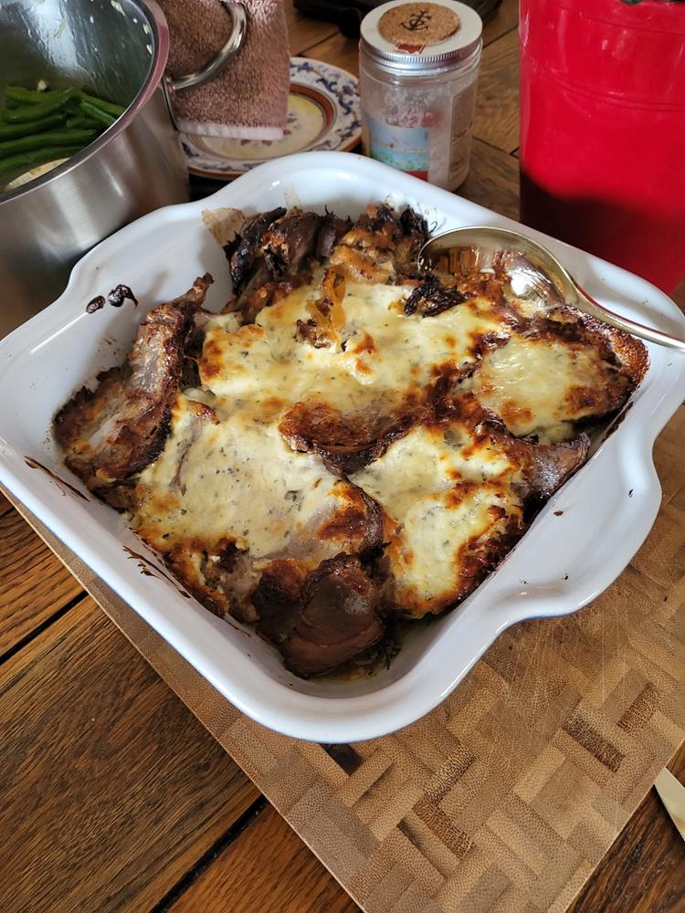 Dazu gab es Rosmarinkartoffeln und Prinzessbohnen (die waren mit etwas Butter und Knoblauch