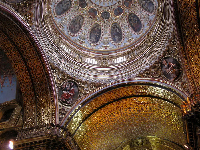 Fast in allen Kirchen, die wir besichtigen, finden Gottesdienste statt. So auch am Abend, als wir die die Iglesia de la Compaña de Jesús besuchen, die bis auf den letzten Platz gefüllt ist. Die Pracht dieses sakralen Bauwerks ist fast atemberaubend. Dies sowohl im Hinblick auf Fassade und Portal wie auch bezüglich der Ausgestaltung. So viel Gold an Altaren, Kuppel, Deckengewölbe und Pfeilern haben wir noch nirgendwo in einer christlichen Kirche gesehen.
