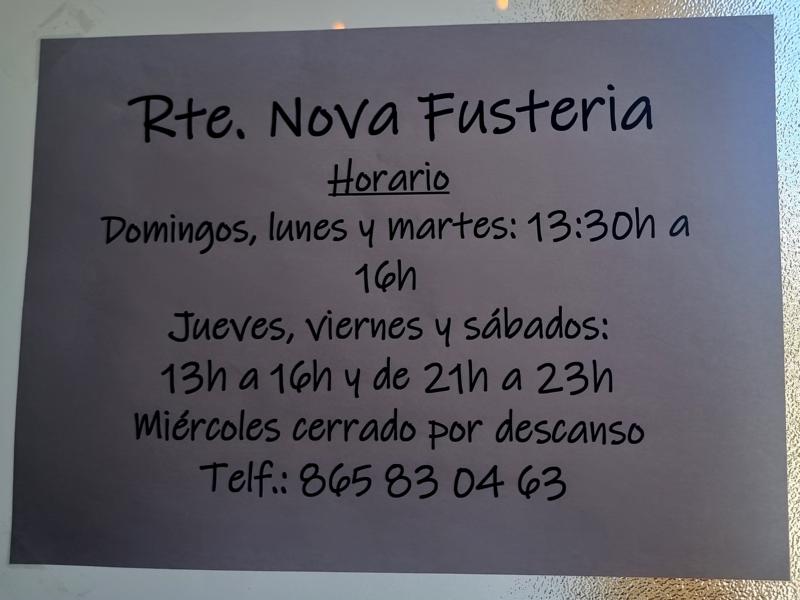 Vorstellen möchte ich heute das Restaurant "La Nova Fusteria" (fusta heißt auf Valenciano Holz, fusteria ist ebenfalls Valenciano [span. Carpintería], auf Deutsch: die neue Schreinerei), denn die alte gab es wirklich einmal in denselben Räumen. Wir haben uns dort vor 18 Jahren unsere Holzzuschnitte anfertigen lassen. Danach hat sich dort ein Restaurant etabliert, dass sich La Fusteria nannte, deren Chef Pablo jedoch Ende 2022 nach Ontinyent ging und dort unter demselben Namen ein neues Restaurant eröffnete. Das Restaurant wurde im August unter neuer Leitung wiedereröffnet, völlig neu gestaltet, und um sich von dem vorherigen Gastronomen abzusetzen, nennt es sich jetzt die "nova fusteria", also die neue Schreinerei. Deshalb beim Vergleichen bitte aufpassen,