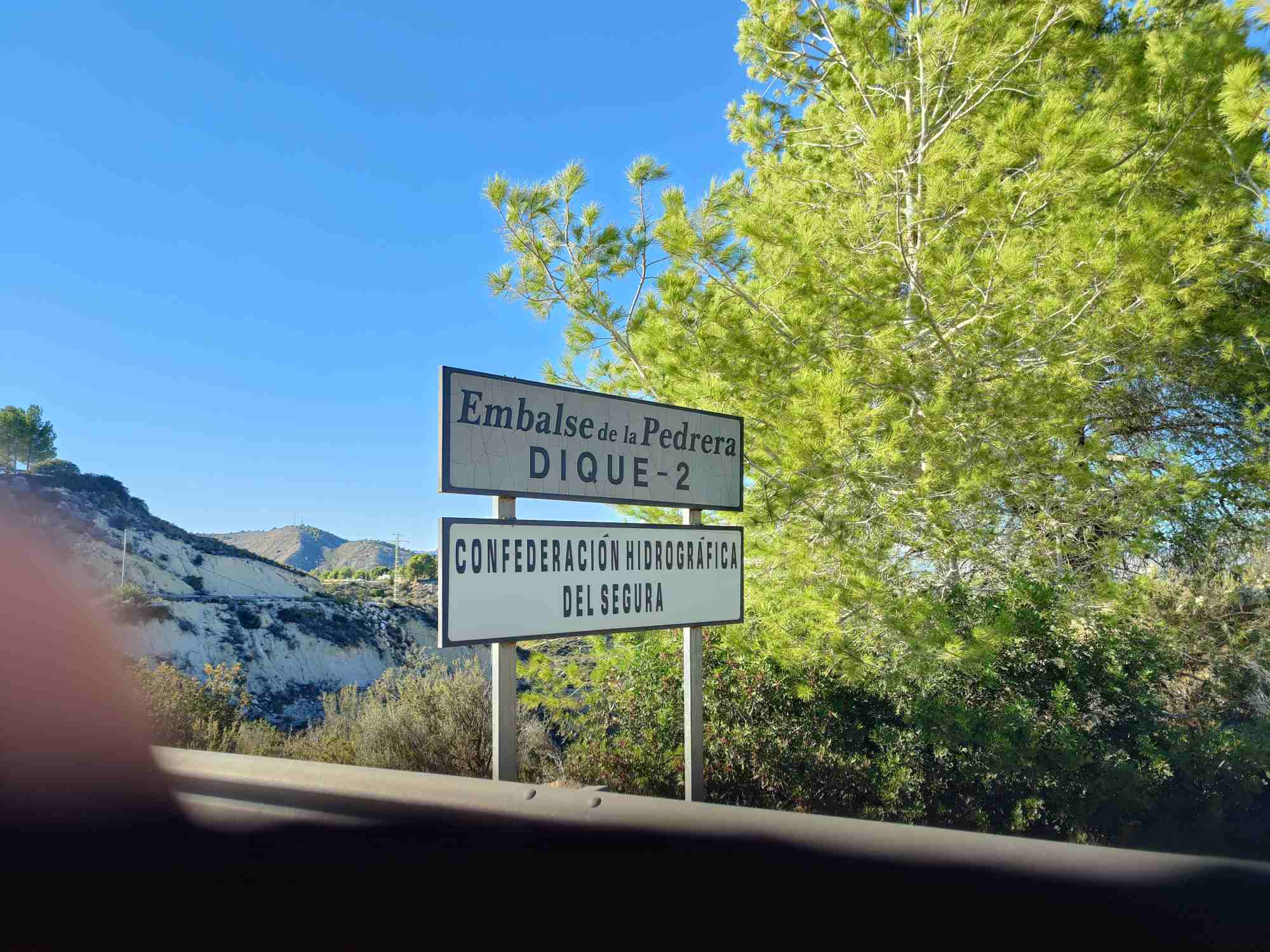 Nachdem es heute am Strand plötzlich etwas windig und frisch würde, haben wir unsere Sachen zusammengepackt und die Badesachen zu Hause mit dem Auto getauscht. Von Torrevieja, La Veleta sind wir gerade aus die CV 95 nach San Miguel de Salinas und noch ein paar Kilometer weiter zum Stausee Pedrera gefahren. Nach etwa 20 Minuten Fahrt, vorbei an vielen Orangen oder Mandarinen- und Granatapfelhainen, haben, haben wir den Aussichtspunkt am Stausee erreicht. Von dort machten wir uns zu Fuß hintunter zum See, wo wir ein paar Anglern begegneten. Schwimmen ist dort angeblich nicht erlaubt. Mittlerweile war wieder tolles Wetter und gleich Mal 4 Grad wärmer wie an der Küste. Nach einem Spaziergang am Ufer, mit viel Schlamm führen wir dann um den See herum und wieder zurück.