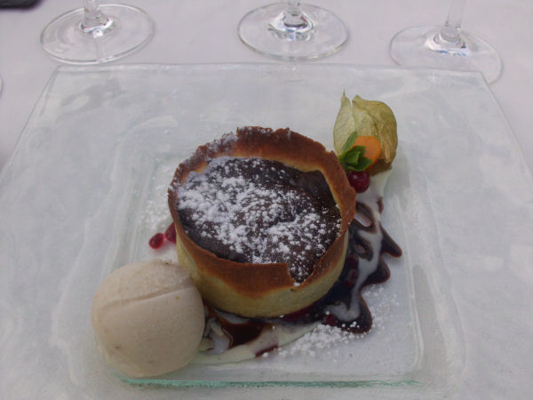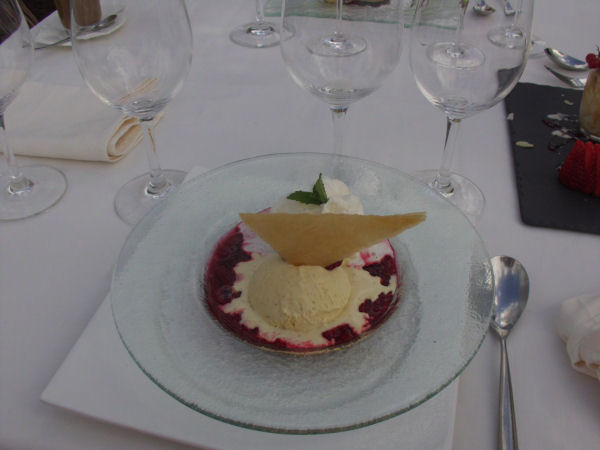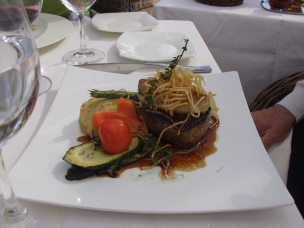 Zur Hauptspeise gab es Roastbeef vom heissen Stein, am Tisch filettiert, der heisse Stein mit einer Kräuter-Salz-Mischung bestreut, dazu Sossen, Kartoffeln und gegrilltes Gemüse - nur wenn ich schon daran denke, bekomm ich wieder Hunger