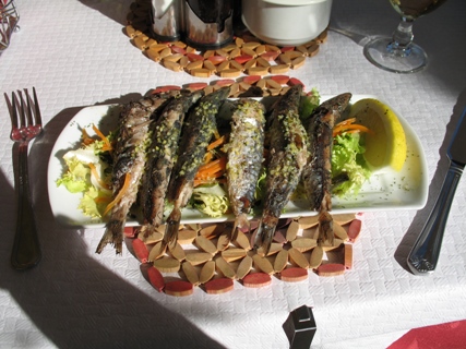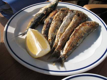 Die Einheimischen essen die kleinen Sardinen mit „Haut und Haaren“, ich schaffe das aber nur, wenn sie nicht größer als 7 cm sind.