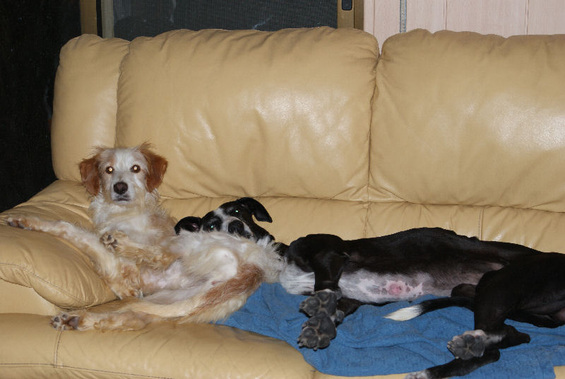 dein Hunde - Sofa - Bild erinnert mich ganz stark an mein "Wohnzimmer" ! Hund "Blacky" langgestreckt auf dem Sofa.........