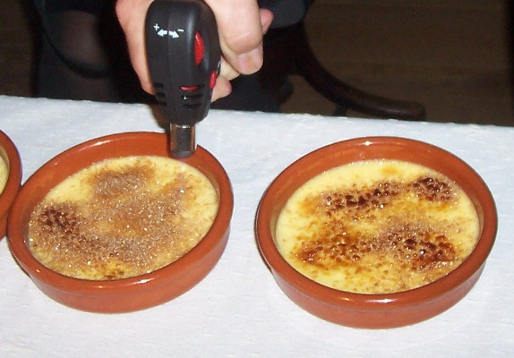8. Vor dem Anrichten die Vanillecrème mit braunem Zucker bestreuen und die Zuckerkristalle mit einem Gourmetbrenner (Bunsenbrenner) oder einem speziellen, im Feuer erhitzten Eisen schmelzen und sofort servieren.