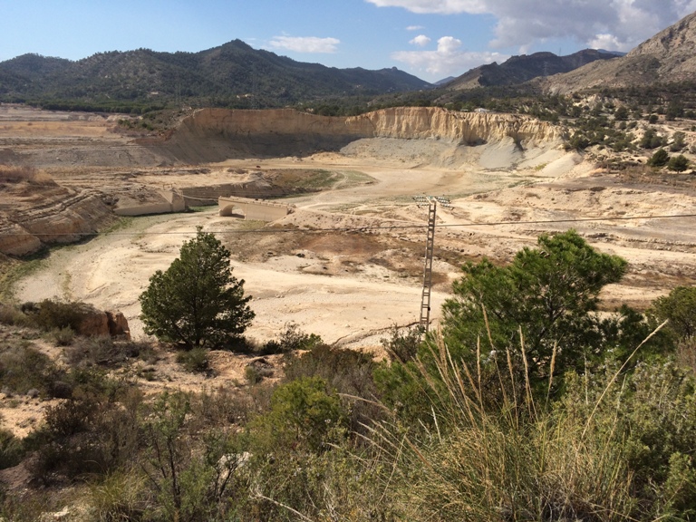 Der Stausee hatte vor einem Jahr noch 13 hm3, aktuell sind es gerade mal 8 hm3 mit einem aktuellen Jahresschnitt von 7 hm3. Das ist wirklich sehr wenig, wenn man bedenkt, dass jetzt eigentlich die Jahreszeit ist, in der ein hoher Wasserstand erwartet wird. So viel ich weiß, wird der Amadorio aber auch mit Wasser aus der Mitte Spaniens gespeist. Ob die den Hahn abgedreht haben?