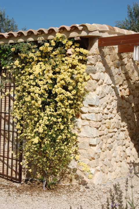 Im Süden blühen die Rosen im April/Mai, die gelben Blüten fallen kaskadenartig herunter.