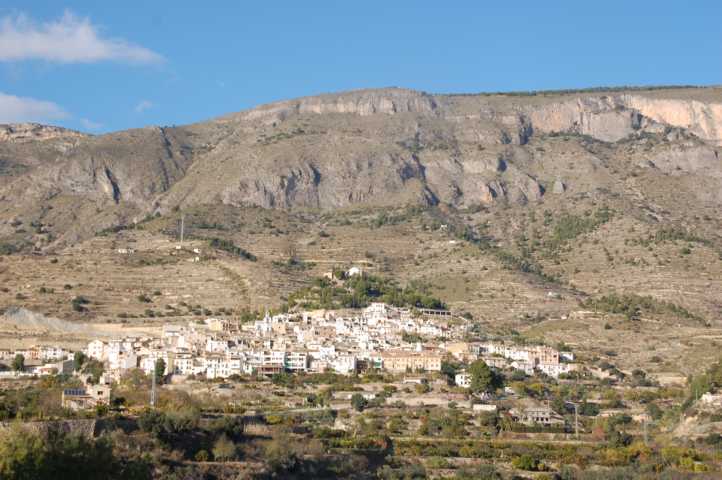 Der Ort liegt inmitten von Mandel- und Olivenhainen an einem Ausläufer der Sierra Aitana (höchster Gipfel ist der Pico de Aitana mit 1.558 Metern). Unterhalb liegt das Tal des Río Sella.