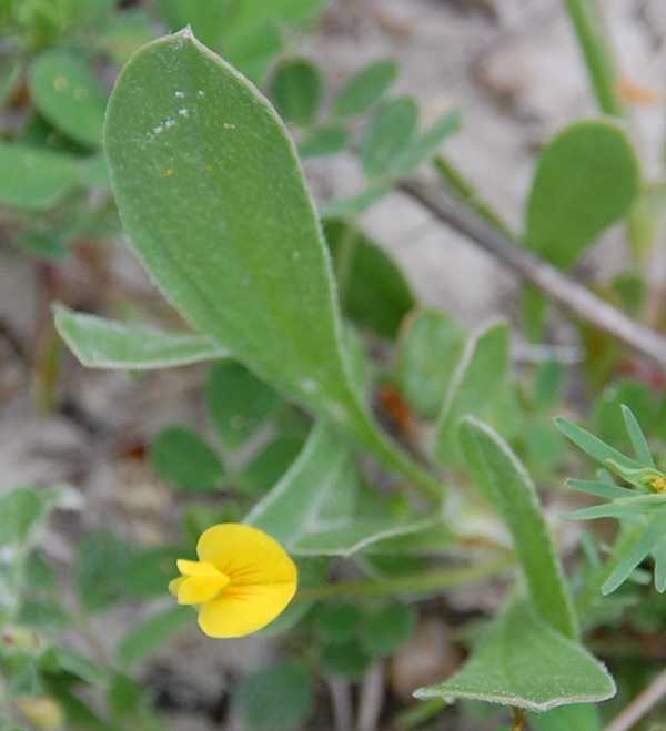 Ein Schmetterlingsblütler - die jungen Blüten sind gelb, wie beim Hornklee - die älteren orange-violett. Es bildet einen dichten Teppich...