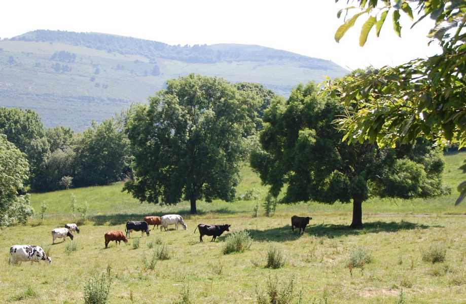Kälbchen lagen vor manch einsamen Gehöften wie Wachhunde vor den Türen, Greifvögel glitten durch die Lüfte und Bergbäuerinnen schwangen in sengender Hitze ihre Sense, damit die Tiere im Winter genug Heu zum Fressen haben.