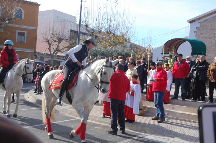 Am Platz vor der Kirche war ein Rummel aufgebaut, nebenan gab es einen Paellawettbewerb, eine Kletterwand war aufgebaut, Autoschau und vieles andere. Ich konzentrierte mich auf die Tiersegnung, die mit einem Umzug durch den Ort begann.