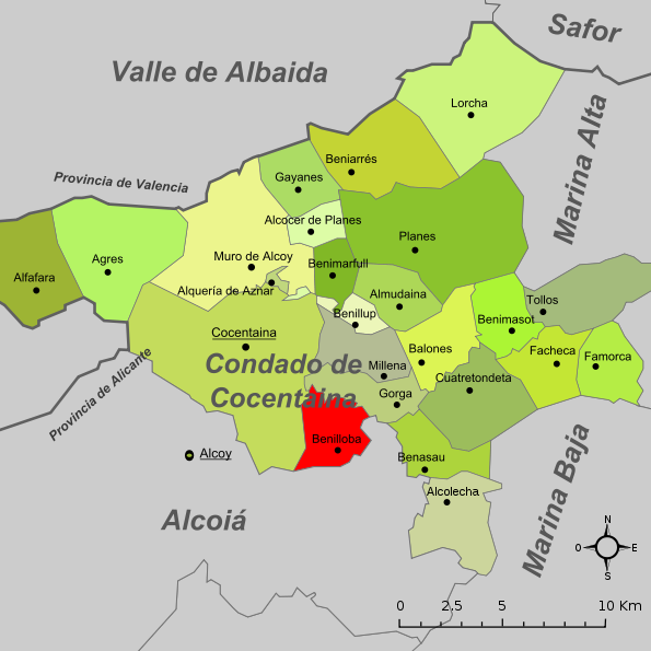 Es gibt nicht viele Wege, die von den Küsten der Landkreise Marina Alta oder Marina Baja in die benachbarte Comarca El Comtat (El Condado de Cocentaina) führen. Doch gerade die schwere Zugänglichkeit bewahrte die einsamen Täler im Schutz der hohen Berge mit ihren Mandel- und Olivenplantagen vor intensiver Landwirtschaft, Industrialisierung und wilder Bebauung. In den Dörfern des Landkreises scheint die Zeit stehen geblieben zu sein.