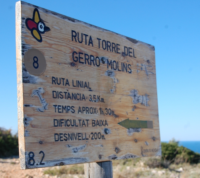 Wir haben für den Hin- und Rückweg 80 Minuten gebraucht, wer gerne länger läuft, kann sein Auto auch an den Mühlen oberhalb von Jávea parken und die 3,5 km bis zum Torre del Gerro laufen. Das sind lt. Hinweisschild 1,5 Std, Fußmarsch (eine Strecke).