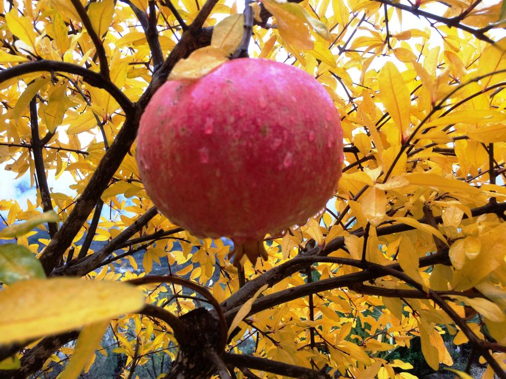 In der späteren Jahreszeit - nach der Ernte - verliert der Granatapfelbaum ALLE Blätter und steht dann kahl in der Landschaft.